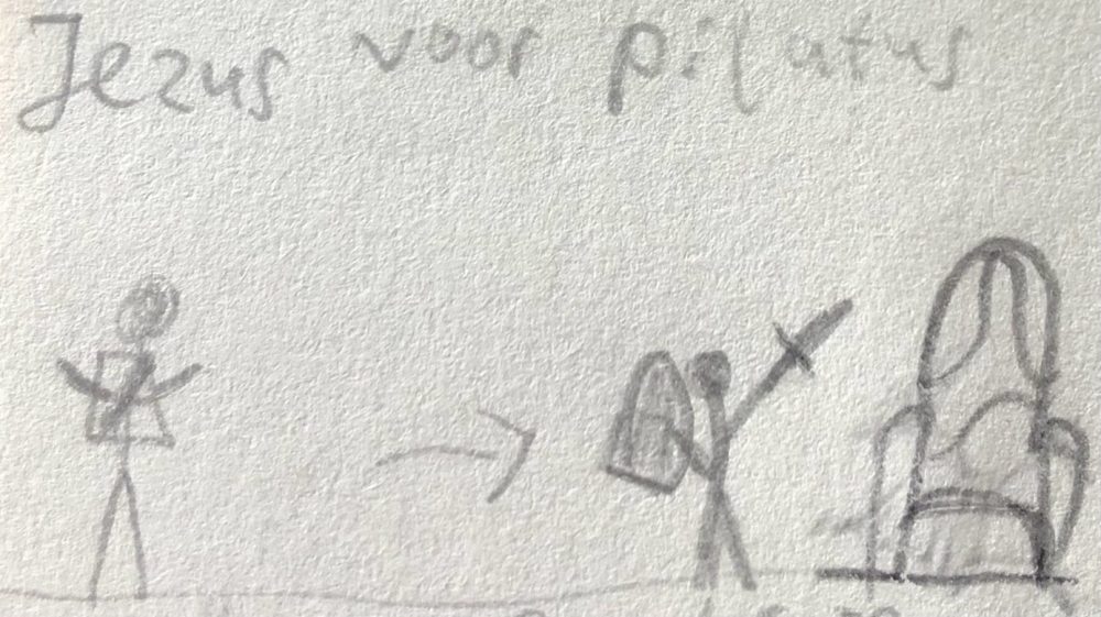 ‘Jezus voor Pilatus’, getekend door JvD. Dankjewel weer!